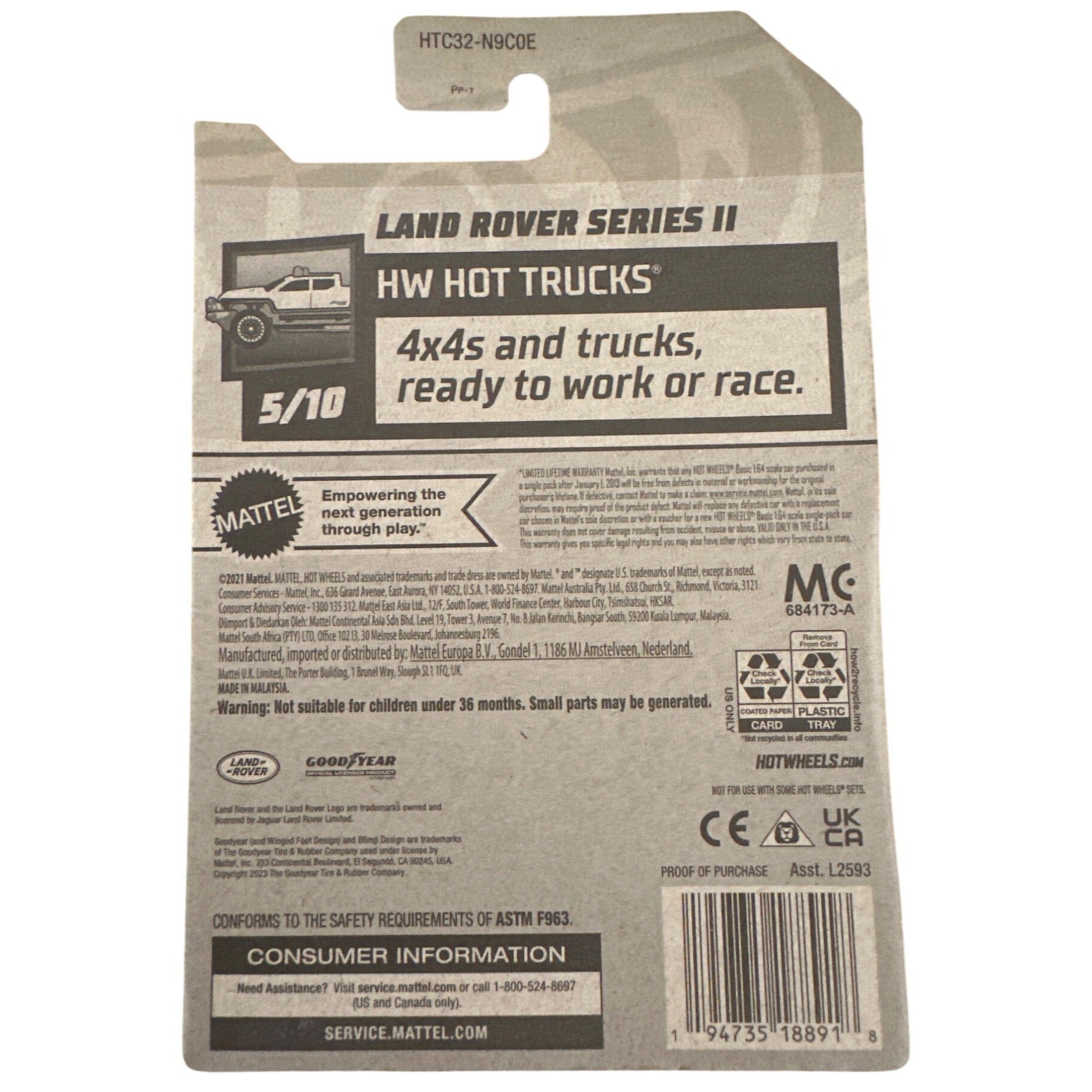 92/250 Hot Wheels Die-Cast Car Gray Land Rover Series II 5/10 HW Hot Trucks