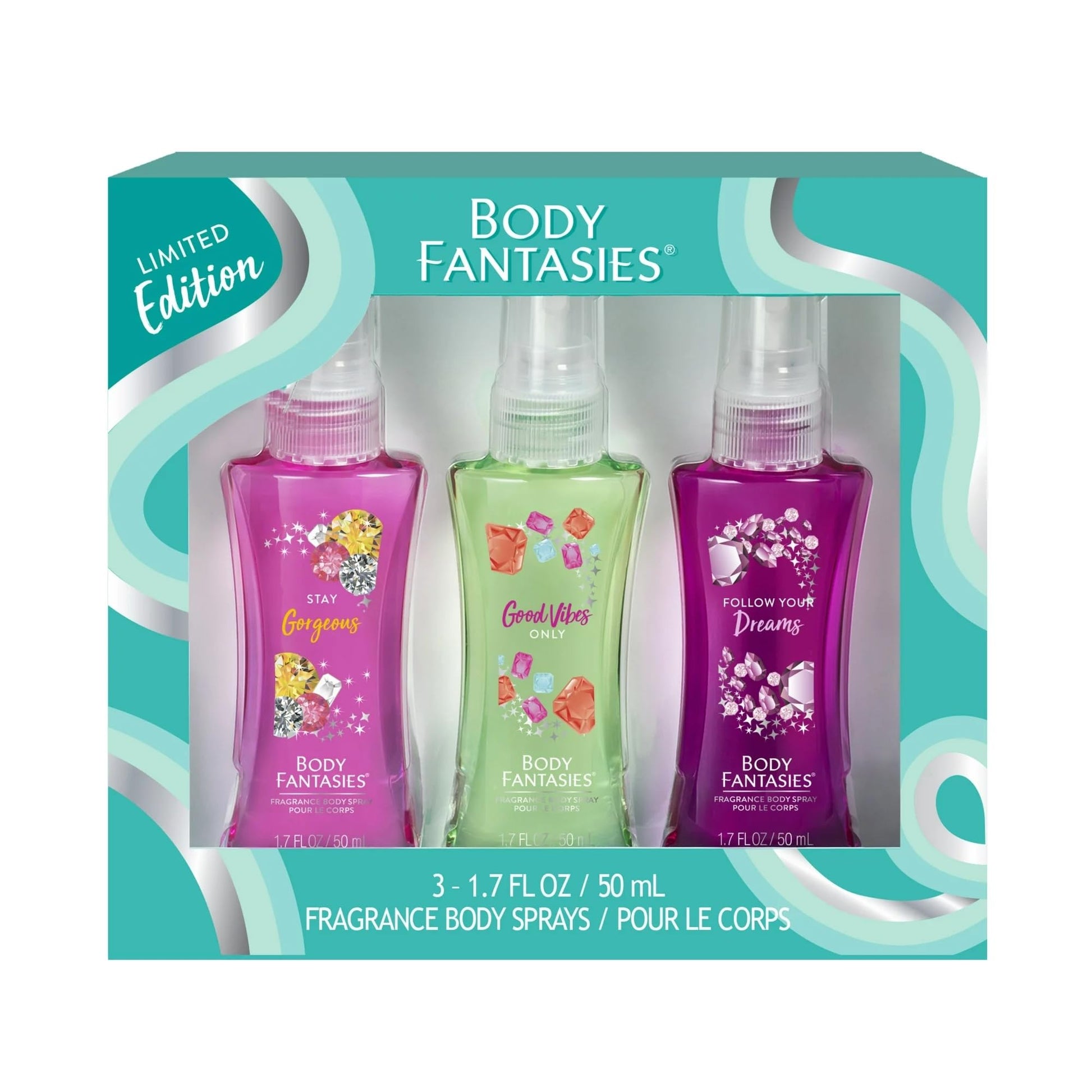 1 x 3pc 1.7 oz each Set Body Fantasies Fragrance Body Spray Scents: Stay Gorgeous, Good Vibes Only, Follow Your Dreams Travel Size Spray Bottle