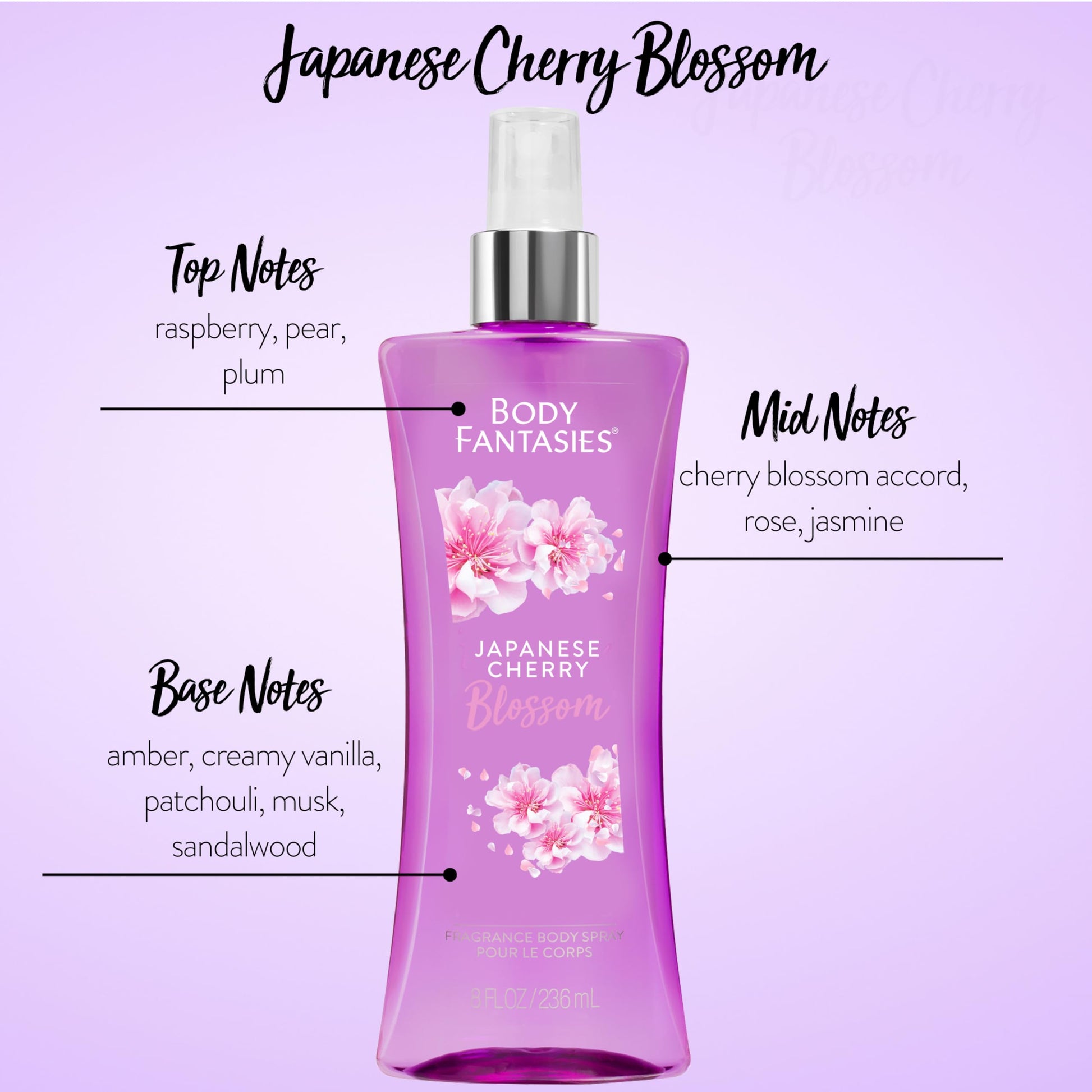 1 x 8 fl oz Body Fantasies Signature Fragrance Body Spray, Japanese Cherry Blossom
