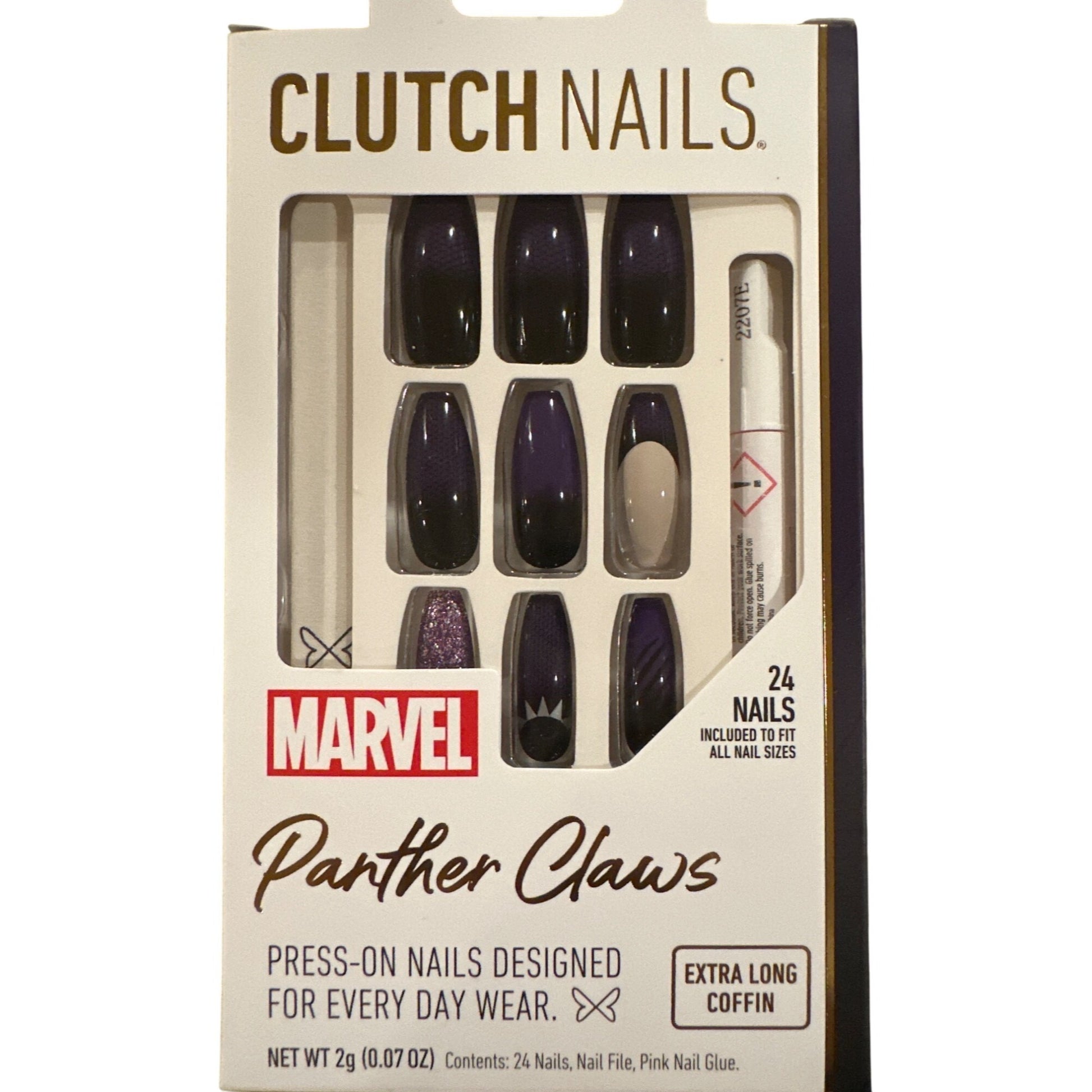 Clutch Nails 24 Nails Marvel Long Coffin Ombre Purple+Beige+Black Panther Claws