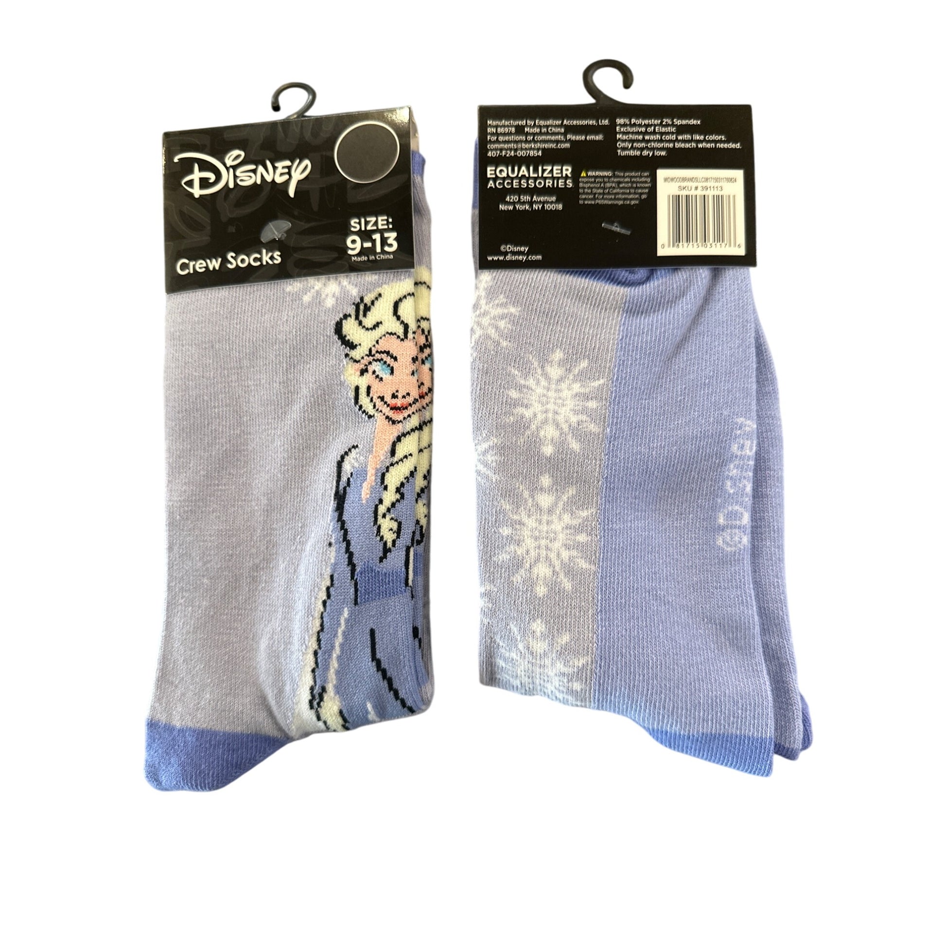 These Disney Frozen Elsa crew socks are designed for a blend of comfort and character. Featuring a light blue base adorned with snowflakes and a charming Elsa illustration, these socks bring a touch of Frozen magic to your everyday accessories. Crafted for men, their crew length provides both style and functionality.