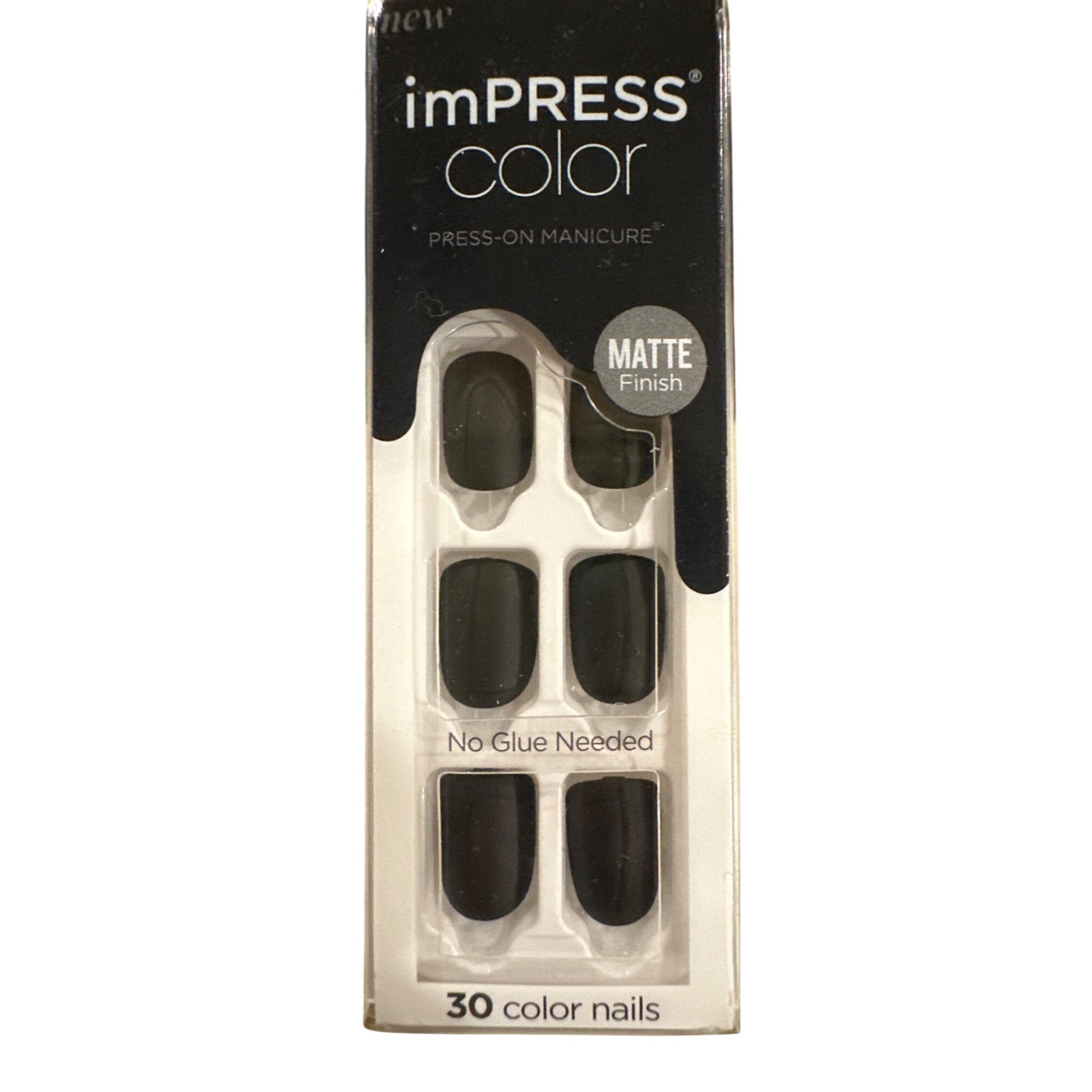 imPRESS Color 30 Nails ON THE ROAD Short Square Matte Black Press-On Finish
