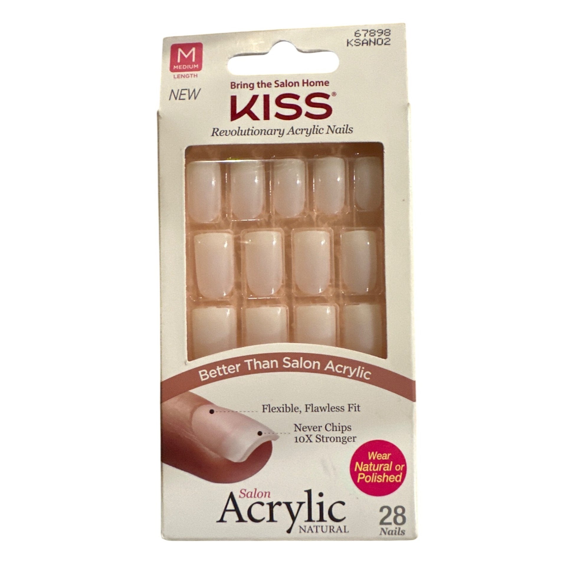 Kiss ACRYLIC 28 Nails Medium Square Shiny Pearly White Acrylic Flexible No Chip