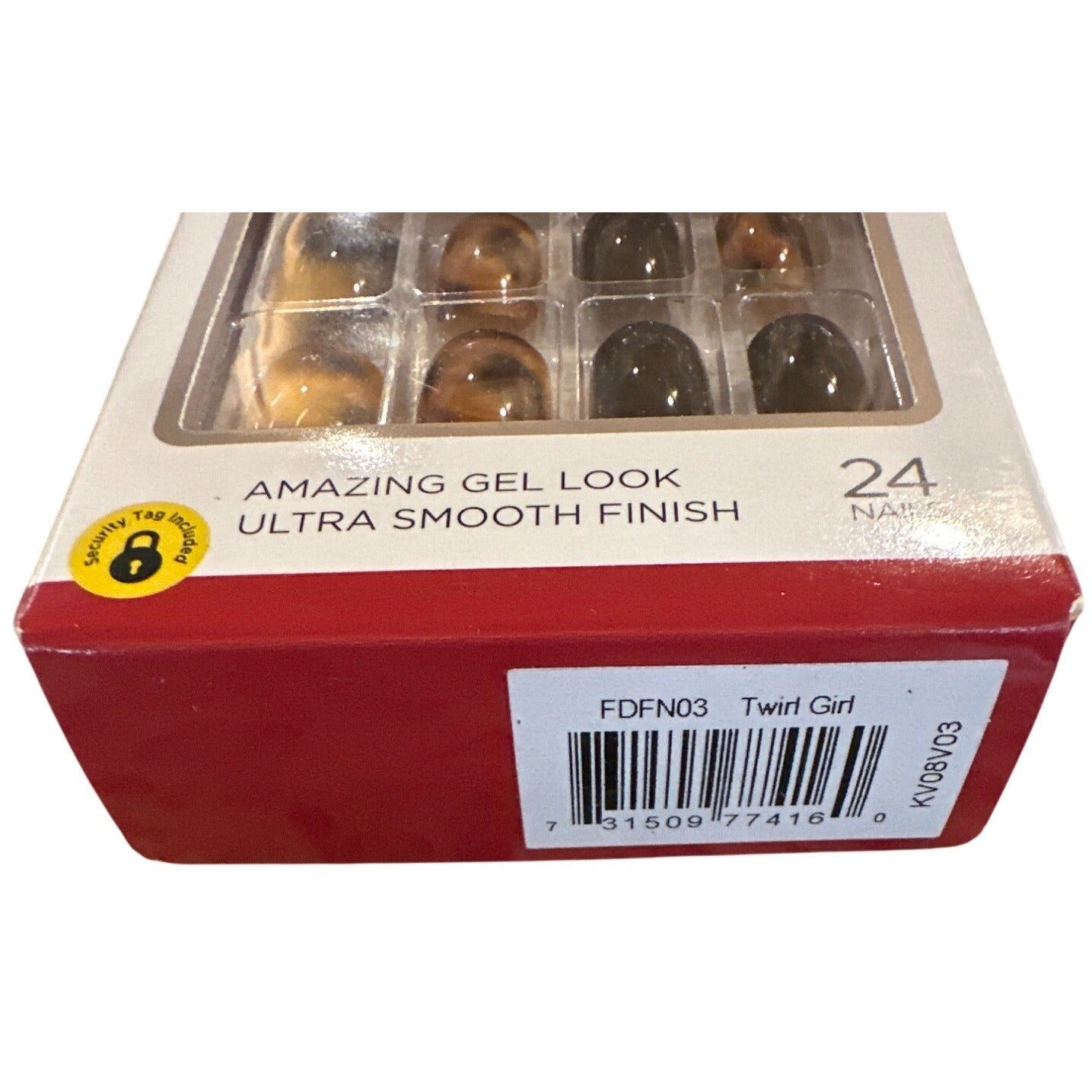 Kiss Fantasy 24 Nail TWIRL GIRL Medium Square Glossy Tortoiseshell+Brown Gel