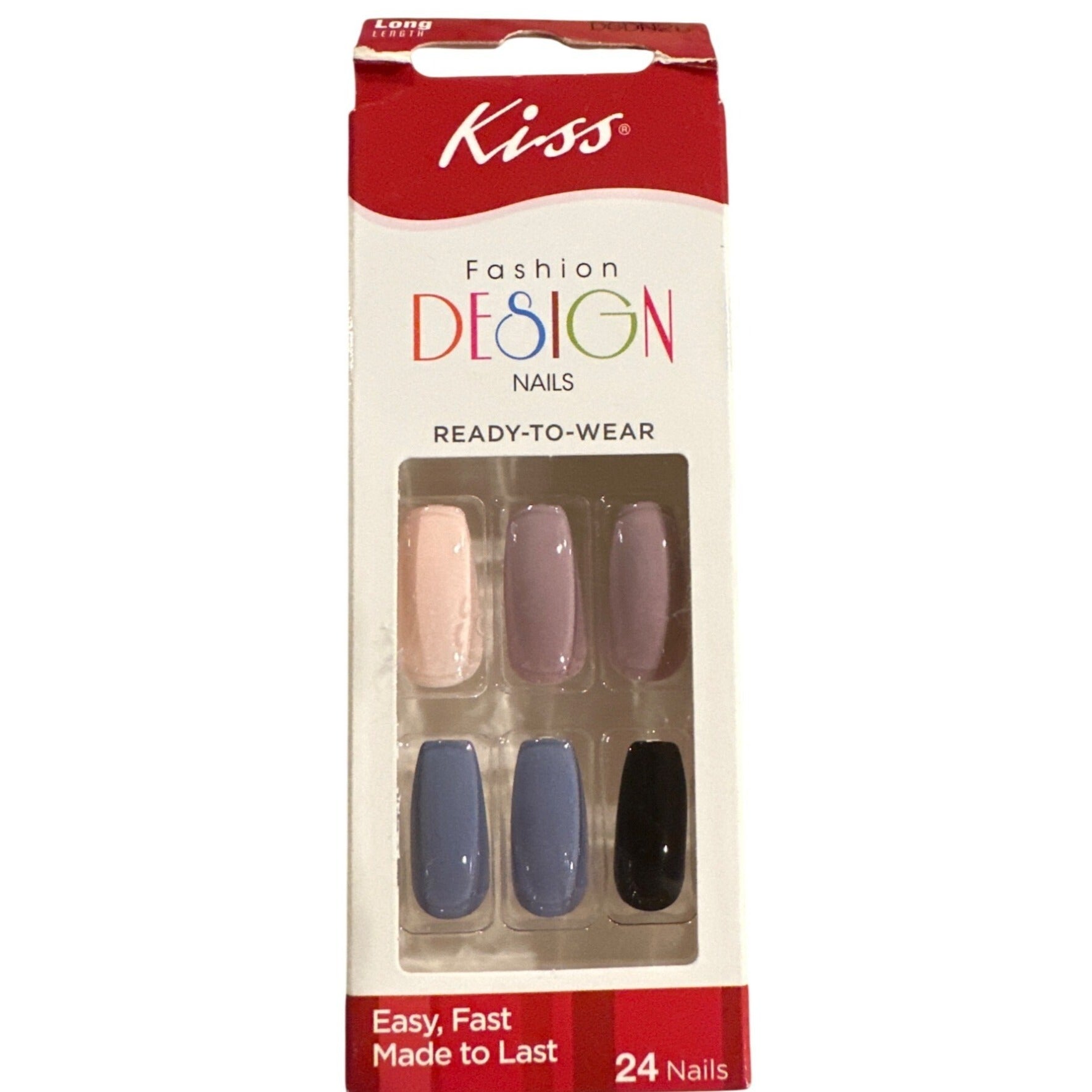 Kiss FASHION DESIGN 24 Nails Long Ballerina Shiny Pink+Azure Blue+Mauve+Black