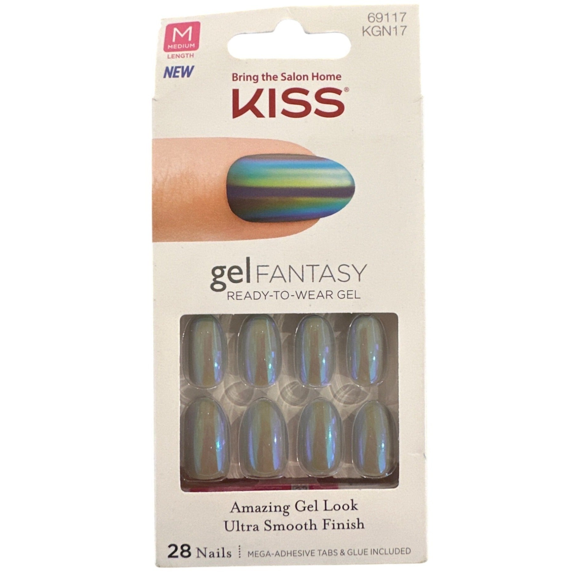 Kiss GEL FANTASY 28 Nail Medium Almond Glossy + Irridescent Multi-color Gel Look