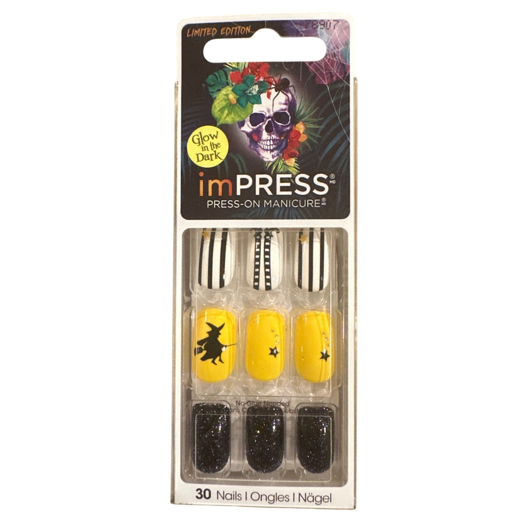 KISS ImPRESS 30 Nails TEEN WITCH Medium Square Shiny Witch + Broom Halloween