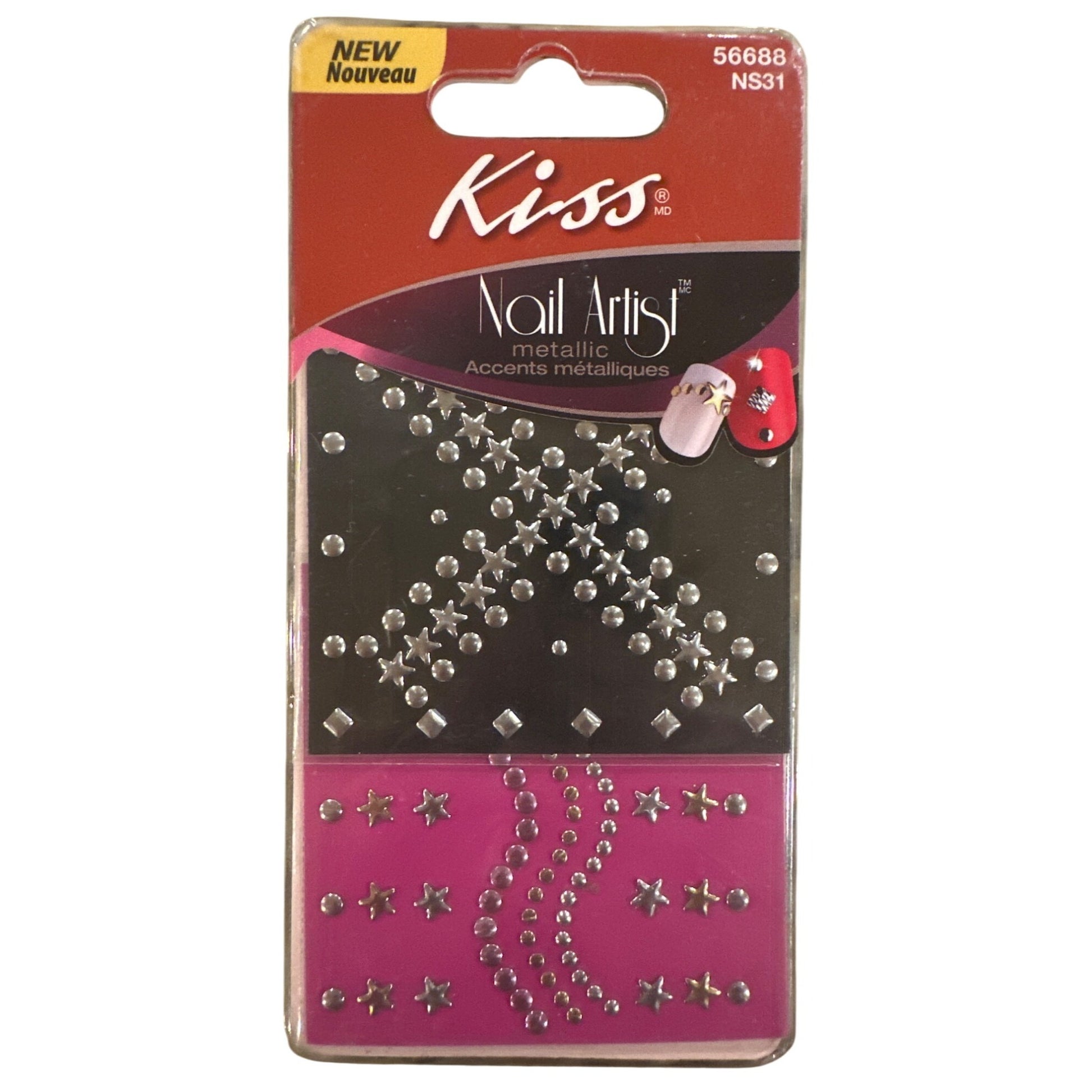 Kiss Nail Artist Metallic Silver Star + Gem Design Metal Studs Nail Art Stickers