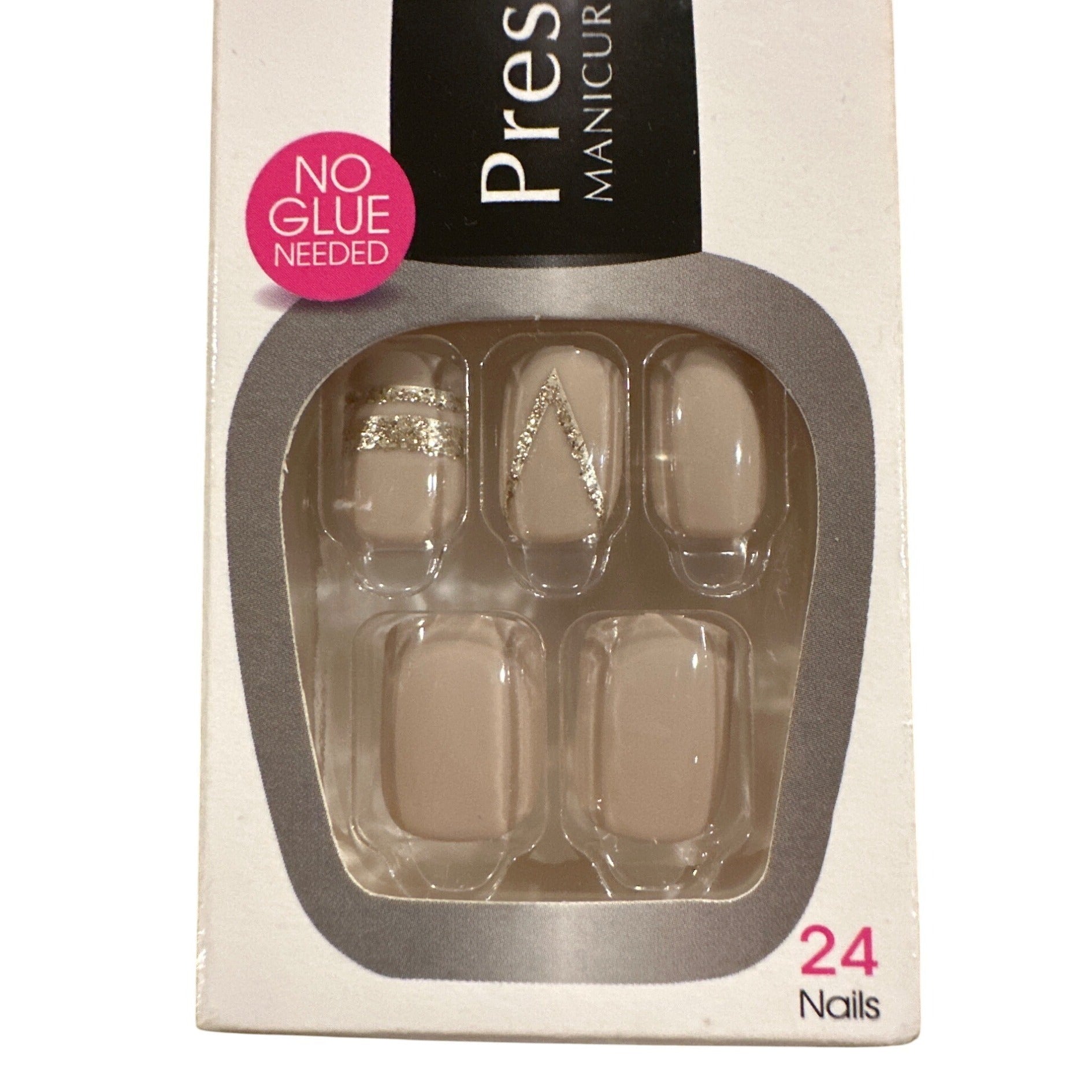 This set of Kiss Press-On Nails offers an effortless way to achieve a salon-quality manicure at home. Designed in a short length with a neutral nude tone and metallic accents, these nails ensure a chic and polished look. The no-glue-needed application simplifies usage, saving time while providing a secure fit.