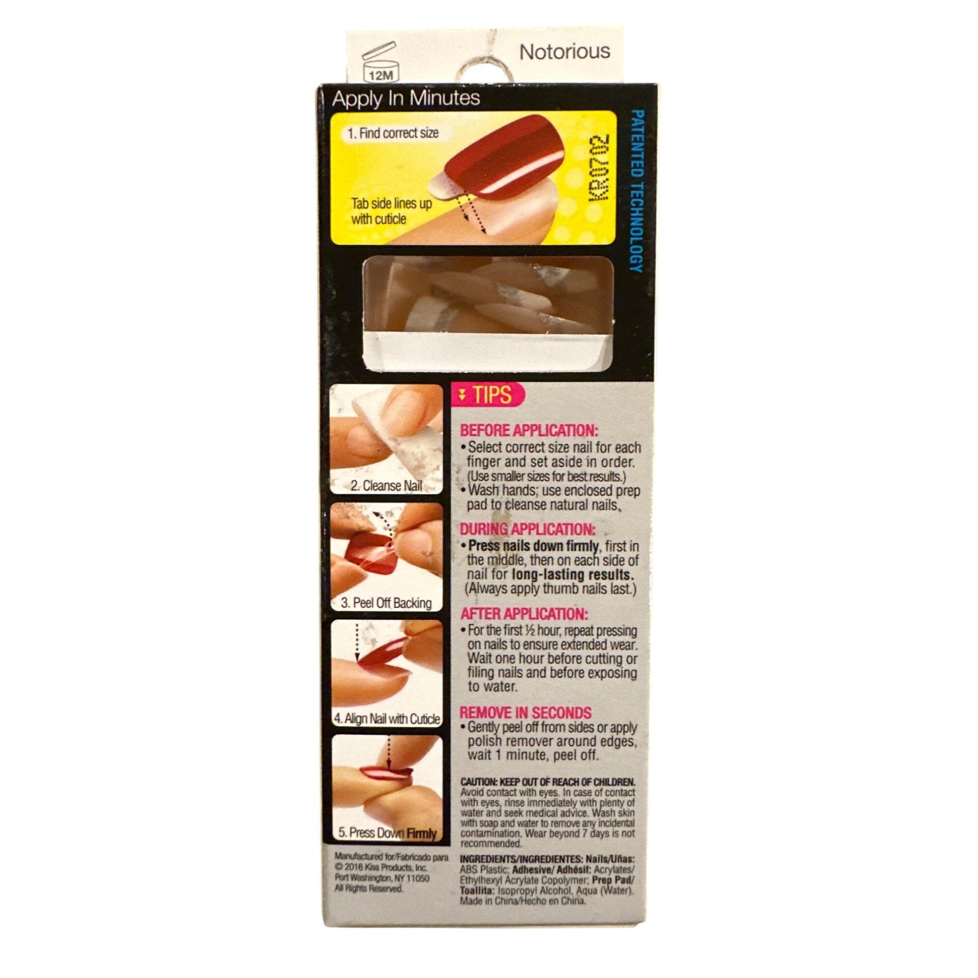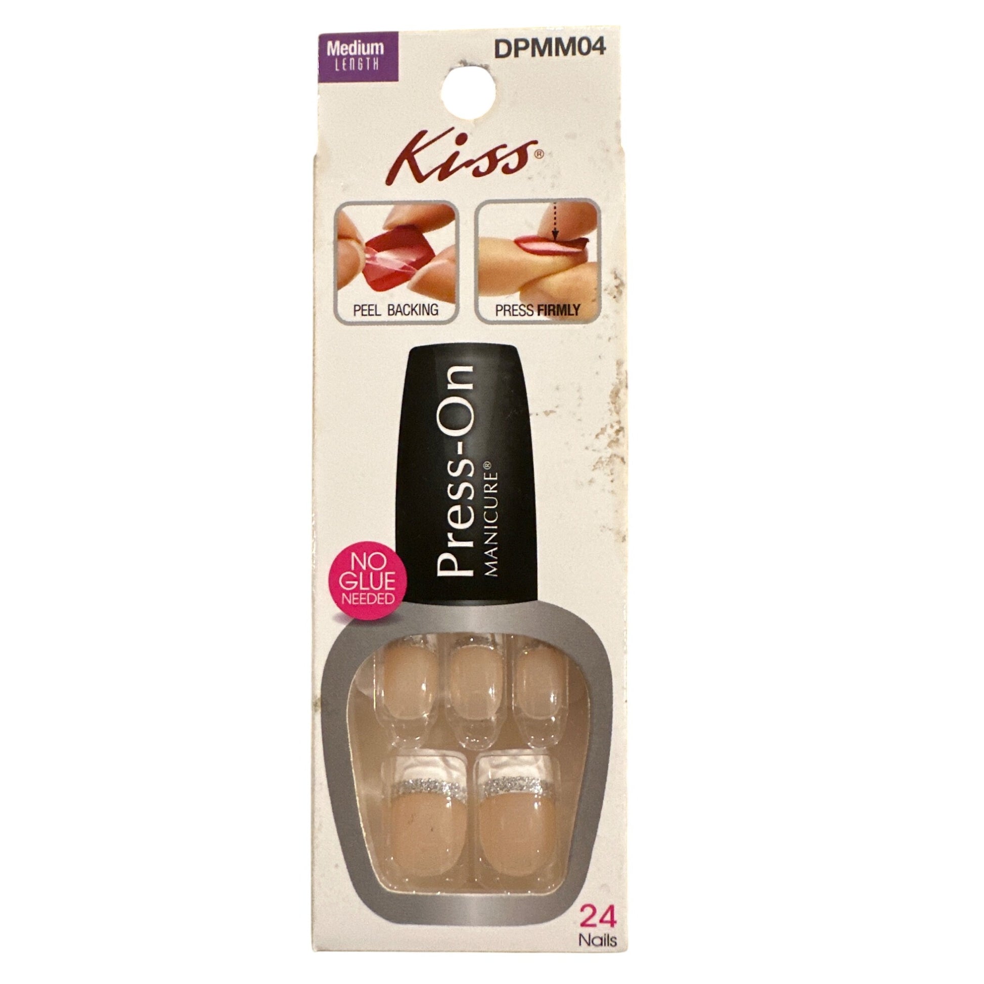 This set of Kiss Press-On nails in the Notorious design provides a flawless manicure with a natural nude base and chic glitter French tips. Designed for medium-length wear, these nails are glue-free and easy to apply, allowing for quick transformations that last. A stylish solution for polished hands effortlessly.