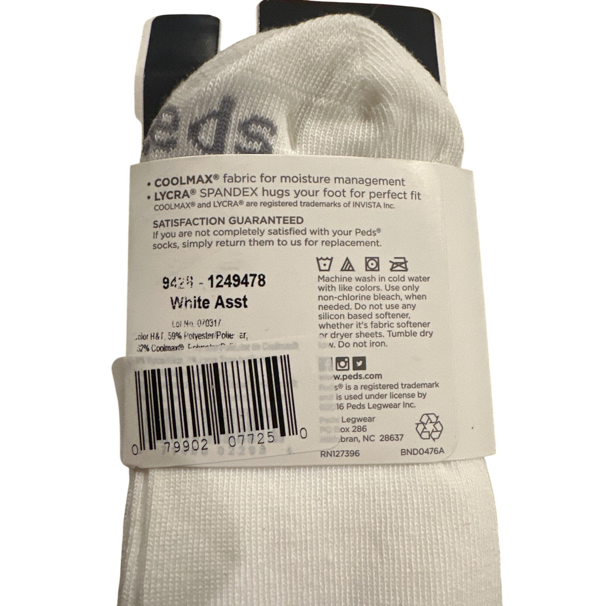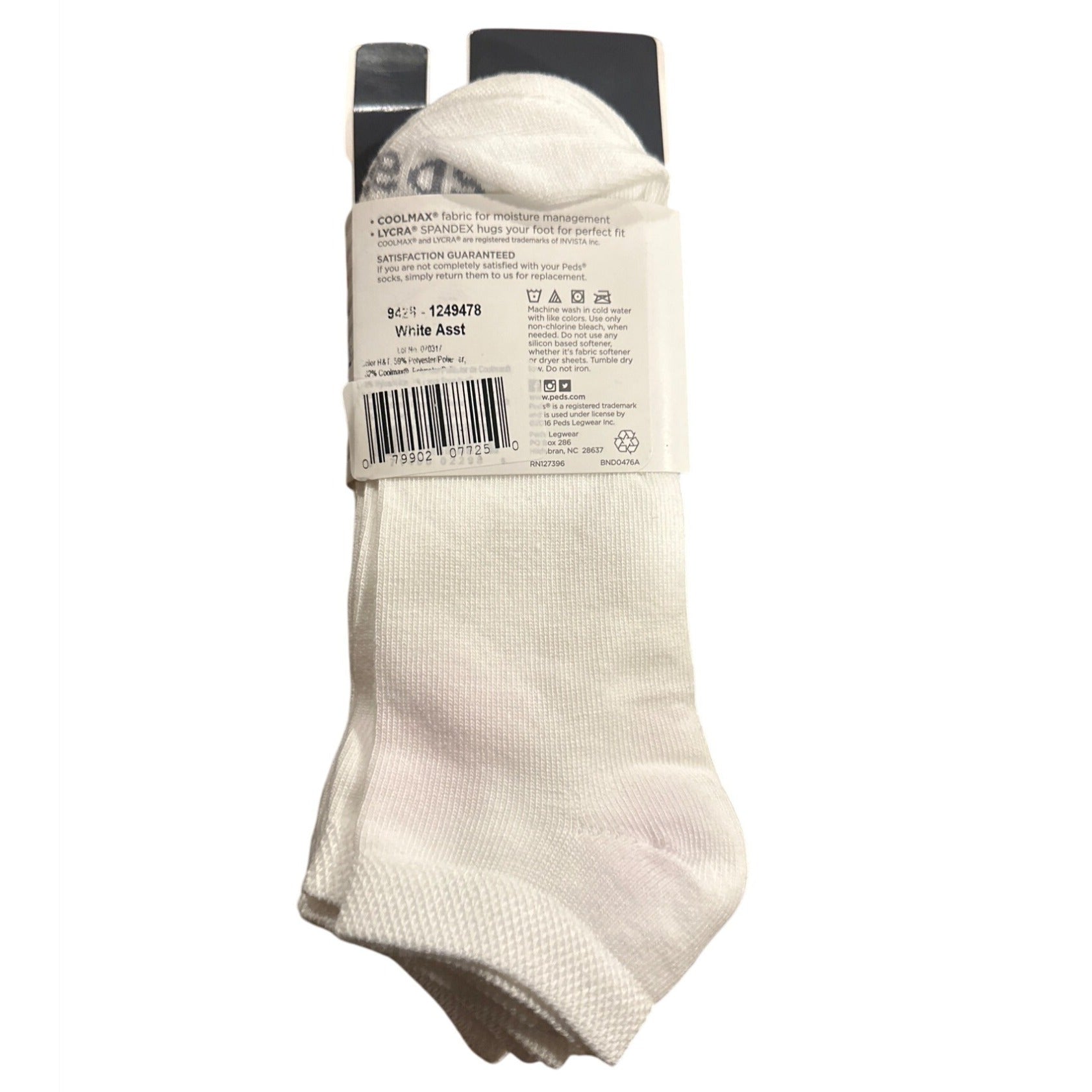 Peds Women 6 Pairs White No-Show Ankle Socks Seamless Toe Coolmax Size 8-12