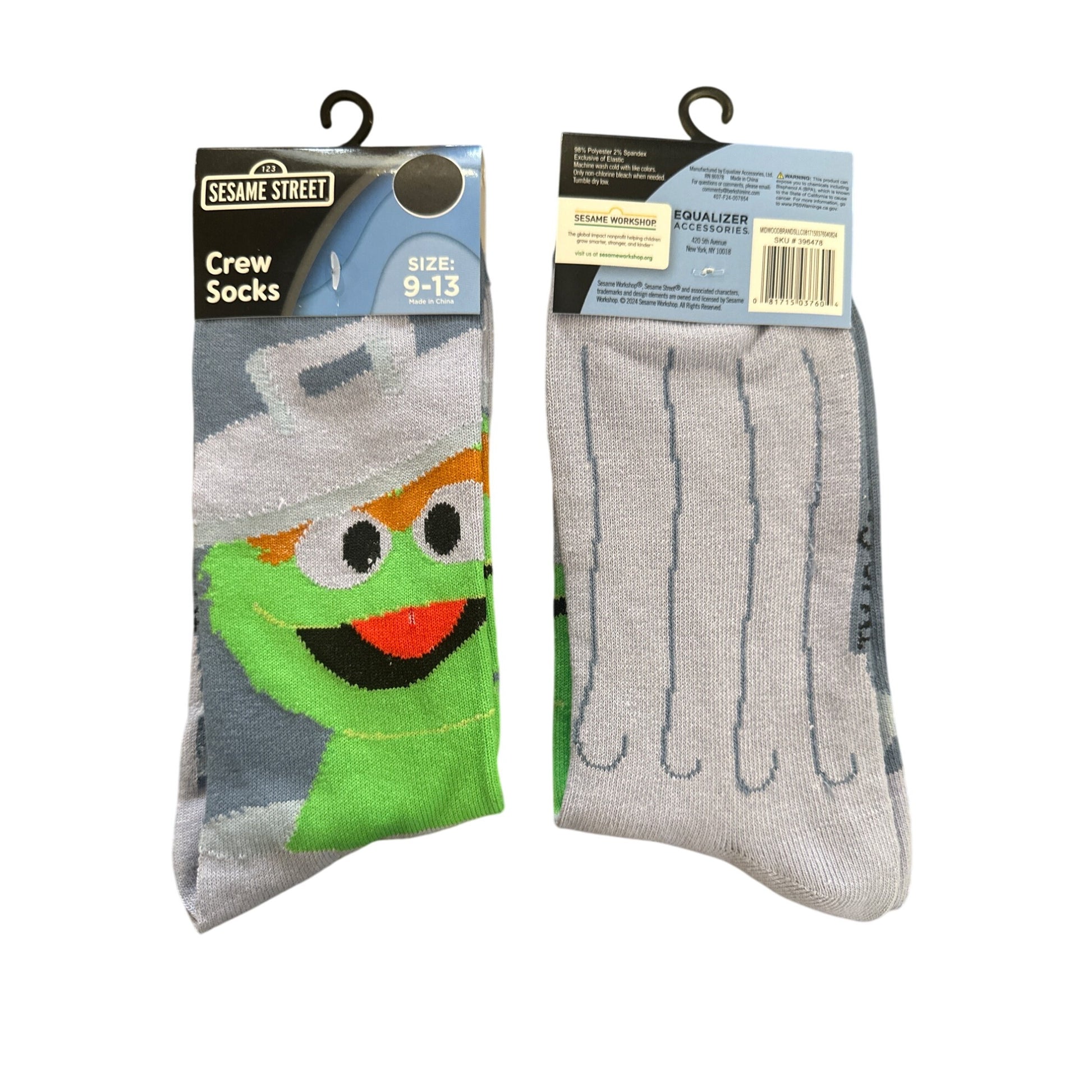 Sesame Street OSCAR THE GROUCH Men's Size 9-13 Crew Socks Gray Green White Black